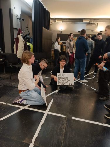 A színházi délutánt Solymosi-Nagy Katinka tanárnő szervezte, célja pedig az volt, hogy a srácok ne csak „kívülről” nézzenek egy klasszikust, hanem aktívan dolgozzák fel a darab által felvetett, ma is húsbavágó kérdéseket.